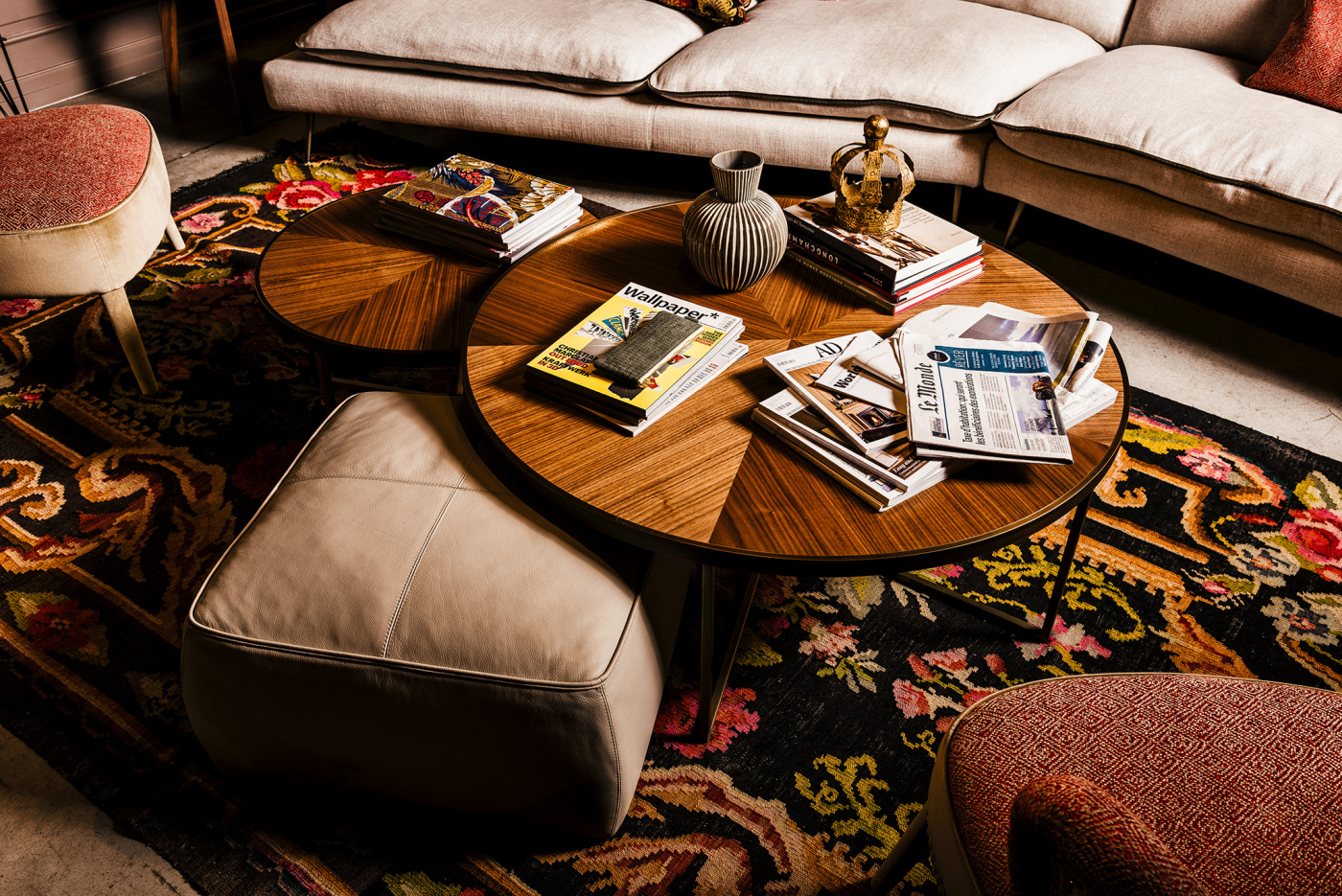Eleganti e discreti come singoli elementi, equilibrati e impeccabili nel loro essere insieme: i tavolini Samuel creano nella zona living un elegante punto non di semplice appoggio, ma un esclusivo perno di eleganza che conferisce all’intero ambiente un inaspettato equilibrio. La particolare rifinitura del top in Noce Canaletto richiama con rigore alla struttura sottostante in bronzo scuro opaco: un perfetto gioco di forme, che si adattano alle evoluzioni e alle funzioni del living contemporaneo.