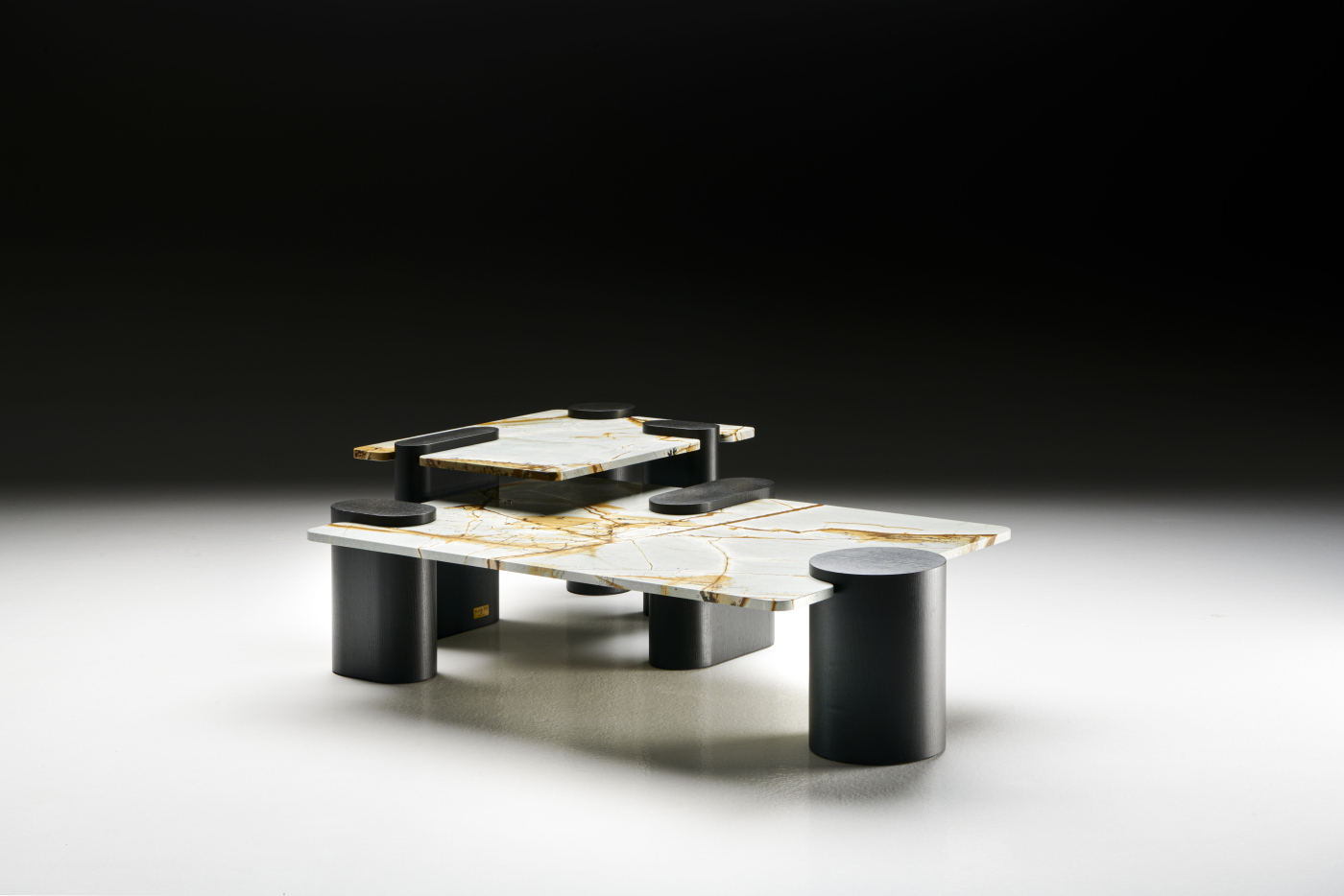 Materia sospesa in un equilibrio gravitazionale: il pregio dei tavolini Amoris è nel gioco di forme perfette, che si alternano armoniosamente nel sostenere, in un’illusoria assenza di peso, la pregevolezza del marmo e della quarzite. Materiali preziosi in incastri raffinati, che sanno sottolineare con plastica eleganza le scelte di stile che generano stupore.