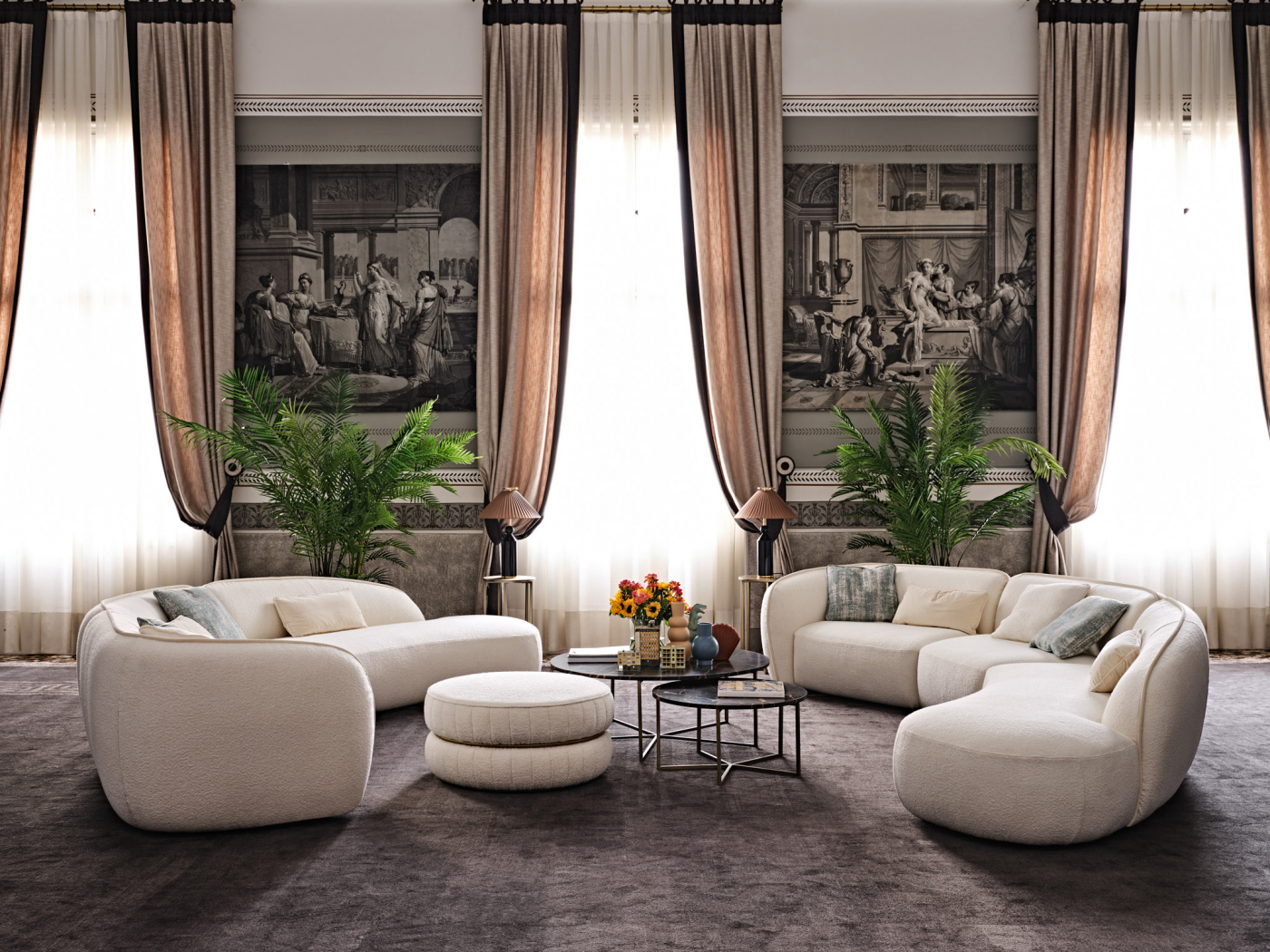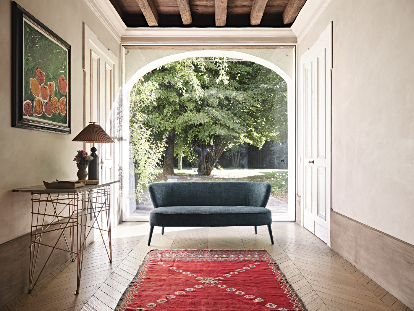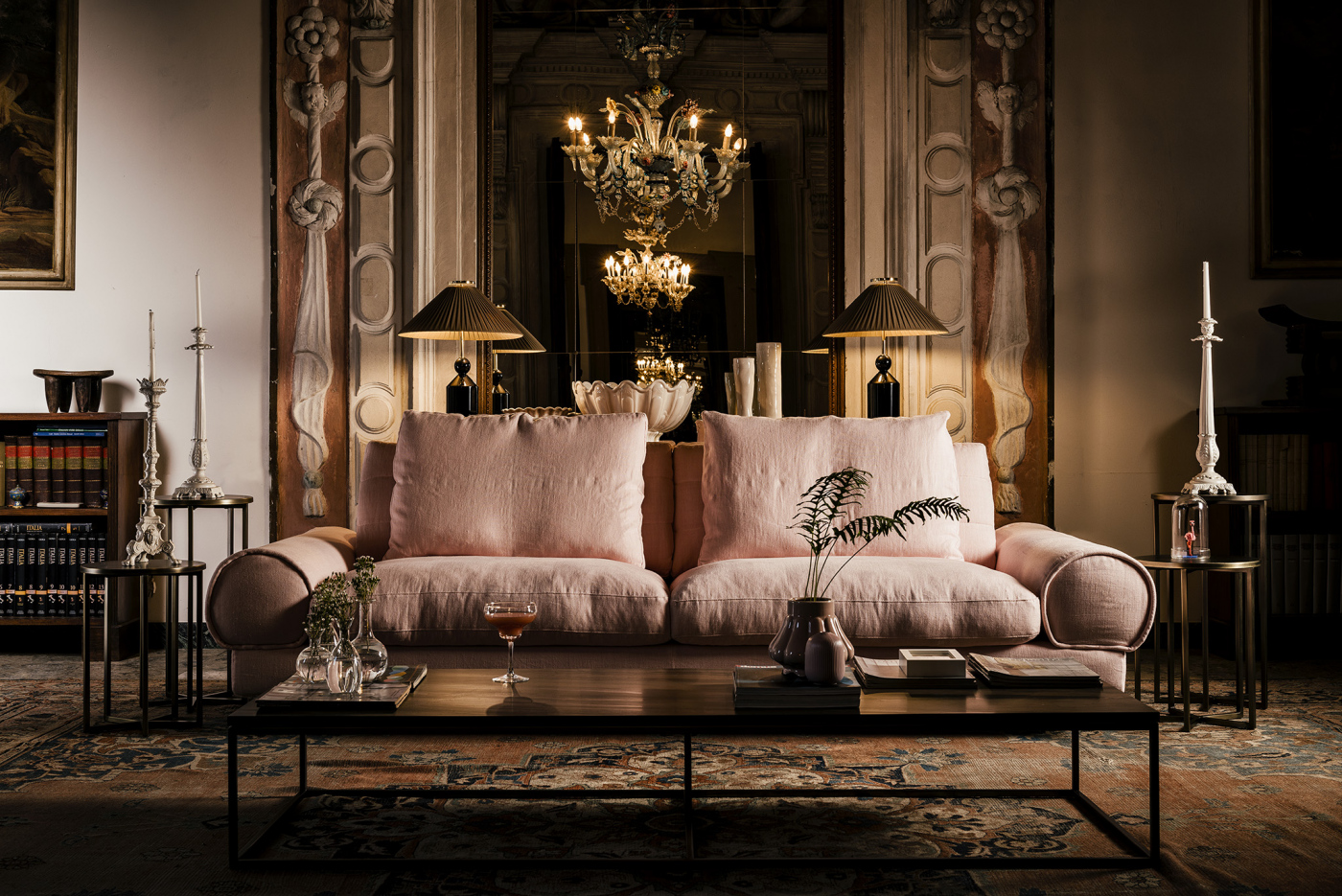 Un divano dall’anima romantica, con raffinati richiami alla classicità e morbide forme che avvolgono le più intime conversazioni. Sebastian nasce dall’equilibrio rigoroso delle linee geometriche, che si lasciano ingentilire dalla morbidezza senza paragoni della seduta. La struttura iconica evoca il tema della classicità: i braccioli delicatamente appoggiati rimandano a elleniche forme, mentre i cuscini in tessuto imbottiti di piumino d’oca 100% conquistano con la loro invitante morbidezza. Per ambienti eleganti con inclinazioni intimamente classiche.
