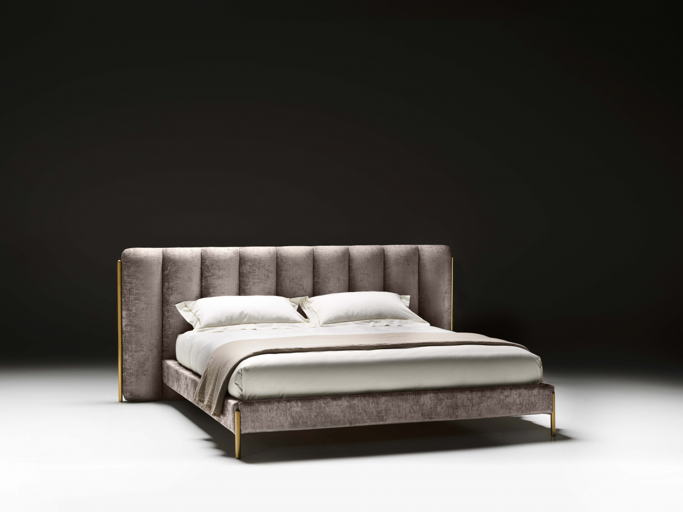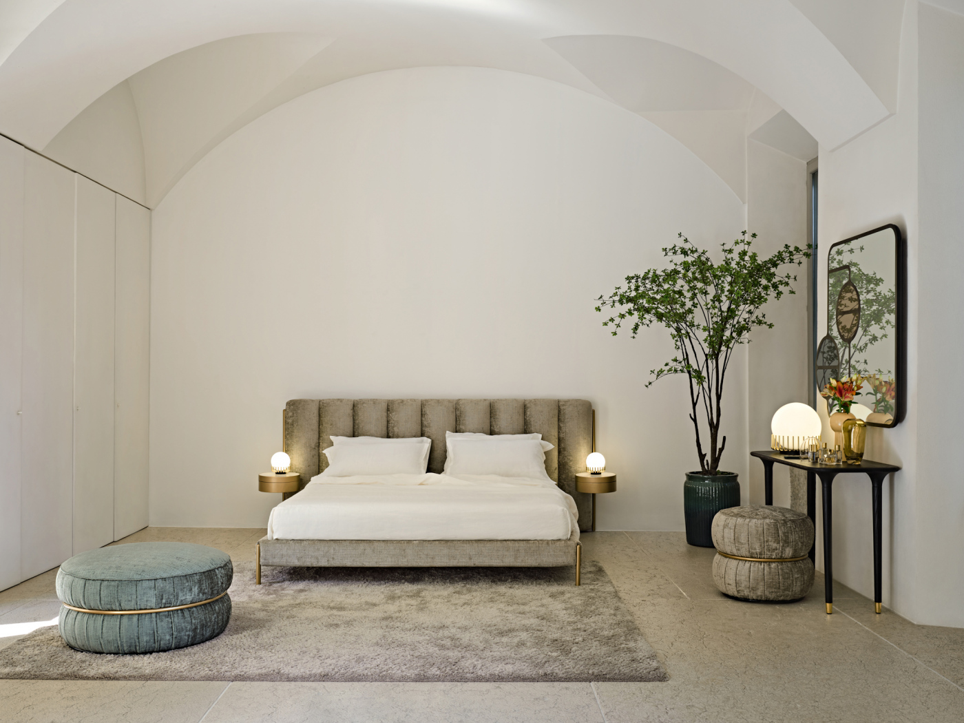 L’eleganza Black Tie entra nella stanza più intima e segreta della casa: il letto Ibisco, con la sua testiera morbidamente scultorea, è un elemento raffinato e rigoroso che sa dialogare con silenziosa maestosità con gli altri elementi della stanza. L’oro opaco incornicia con discrezione i particolari delle linee.